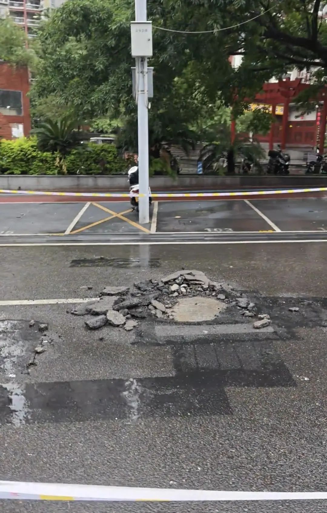 杨家坪街天兴路社区一工作人员告诉记者,当晚确实有一名环卫工人在马路上倒地身亡,是她去现场处理的,这名环卫工人倒在窨井盖旁边,该处柏油路面有破损。“马路破损和环卫工人身亡是否和雷击有关,现在还不清楚,要等有关部门通报。”杨家坪街道一工作人员向极目新闻介绍,马路破损处已经在9日修复,暂不清楚环卫工人身亡是否和雷击有关。